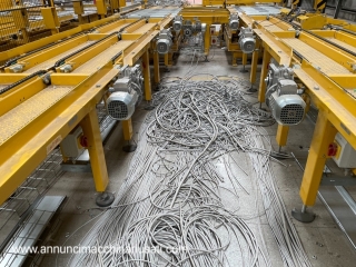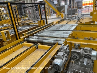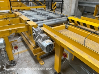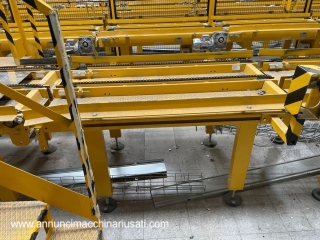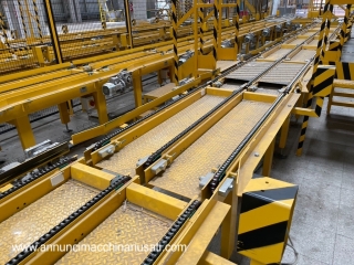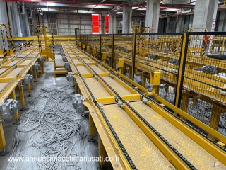 FOR SALE PALLET TRANSPORT AND HANDLING SYSTEM COMPOSED OF 42 STRAIGHT PIECES OF 1.2 MT EACH WITH MOTORIZATION 6 ROTARY TABLES 2 SPAN PASSES AS NEW ### **Chain Conveyor Belts for Pallets** One **chain conveyor belt for pallet** is a mechanical system designed to transport pallets efficiently and safely within industrial plants, warehouses, and production lines. It is particularly useful for handling heavy and bulky loads. #### **Configuration** The chain conveyor belt for pallets is configured with the following main components: - **Conveyor Chains**: They constitute the means of transport of the pallets. The chains can be roller, flat or special toothed, and are designed to resist heavy loads and mechanical stress. - **Belts and Support Wheels**: Support wheels or rollers guide and stabilize the chains, keeping the belt aligned and facilitating movement. - **Frame or Load-bearing Structure**: Made of steel or other robust materials, it supports the entire system and guarantees its stability. - **Motor and Gearbox**: The motor provides the power necessary to drive the chain. The gearbox adjusts the speed and torque of the motor to suit the needs of the system. - **Pulleys and Gears**: Component that transfers the movement from the motor to the chain, ensuring a smooth and continuous operation. - **Alignment System**: Ensures that pallets remain aligned during transport, reducing the risk of derailment. - **Safety Devices**: Sensors and alarms to monitor and guarantee the correct functioning of the system and prevent accidents. #### **When Used** Pallet chain conveyor belts are used in various situations, including: - **Logistics and Warehouse Industry**: For the transport and movement of pallets containing goods or products through the warehouse or along the production line. - **Production Lines**: To transfer pallets between different workstations in production plants. - **Packing Plants**: For the transport of pallets of packaged products to the storage or shipping areas. - **Food and Pharmaceutical Sector**: To handle pallets containing raw materials, finished products or packaging materials in environments that require high standards of hygiene and control. #### **Advantages Compared to Other Systems** - **High Load Capacity**: The chains are designed to handle heavy and bulky loads, making chain belts suitable for transporting loaded pallets. - **Durability and Reliability**: The metal chains are resistant to wear and damage, ensuring long life and low maintenance. - **Operational Continuity**: They can operate in harsh and long-term environments, without significant interruptions. - **Versatility**: They can be designed to adapt to different plant layouts and transport configurations. #### **Mechanical Parts** The main mechanical parts of the pallet chain conveyor belt include: - **Conveyor Chains**: They constitute the main part of the system and are designed to support and transport the pallets. - **Rollers and Pulleys**: They guide and support the chain, ensuring smooth movement. - **Motor and Gearbox**: They provide the power and regulate the speed of the belt. - **Frame**: Supports the system and houses the other components. - **Alignment Devices**: They ensure that pallets remain in position during transport. #### **Mechanical Processes to Build It** The construction of a pallet chain conveyor belt involves various mechanical processes: - **Design**: The system is designed using CAD software to optimize the design and ensure it meets the load and operational requirements. - **Material Cutting and Shaping**: Steel or other materials are cut and shaped to create the frame and chain components. - **Assembly**: Components, including the motor, chains and pulleys, are assembled with precision. - **Chain Assembly**: The chain is assembled and adjusted to ensure smooth operation. - **Testing and Adjustment**: The system is tested to verify correct functionality and adjusted to optimize performance. #### **Sectors of Use** The chain conveyor belt for pallets is used in various sectors, including: - **Logistics and Warehouses**: For the handling and storage of pallets. - **Manufacturing Industry**: For the transport of pallets between workstations. - **Food and Pharmaceutical Industry**: For the transport of products and materials respecting hygiene standards. - **Recycling Industry**: For the handling of pallets containing recycled materials. #### **Matched Components** The chain conveyor belt can be combined with various components to optimize operations: - **Loading and Unloading Systems**: To load and unload pallets from the belt. - **Control and Monitoring Systems**: To monitor operations and ensure correct functioning. - **Safety Devices**: To prevent accidents and guarantee the safety of operators. - **Cleaning Systems**: To keep the system clean and in good condition, especially in food and pharmaceutical environments. #### **Usable Controls** The chain conveyor belt can be controlled via: - **Manual Switches**: For basic on and off operations. - **Control Panels**: To adjust the belt speed, monitor operation and manage alarms. - **Inverter**: To vary the motor speed and optimize the flow of pallets. - **Automation Systems**: Using PLC (Programmable Logic Controllers) to integrate the conveyor belt into an automated system. - **Position Sensors**: To ensure that pallets are aligned and detect any problems in the system. #### **Why It's Better to Buy Used** Purchasing a used chain conveyor belt for pallets can be advantageous for the following reasons: - **Lower Cost**: The price of a used belt is generally much lower than a new one, allowing significant capital savings. - **Durability**: Chain conveyor belts are designed to last a long time, so a used model can still provide many years of reliable service. - **Proven Reliability**: A used tape has already proven its effectiveness in previous applications and can be a safe choice if in good condition. - **Immediate Availability*