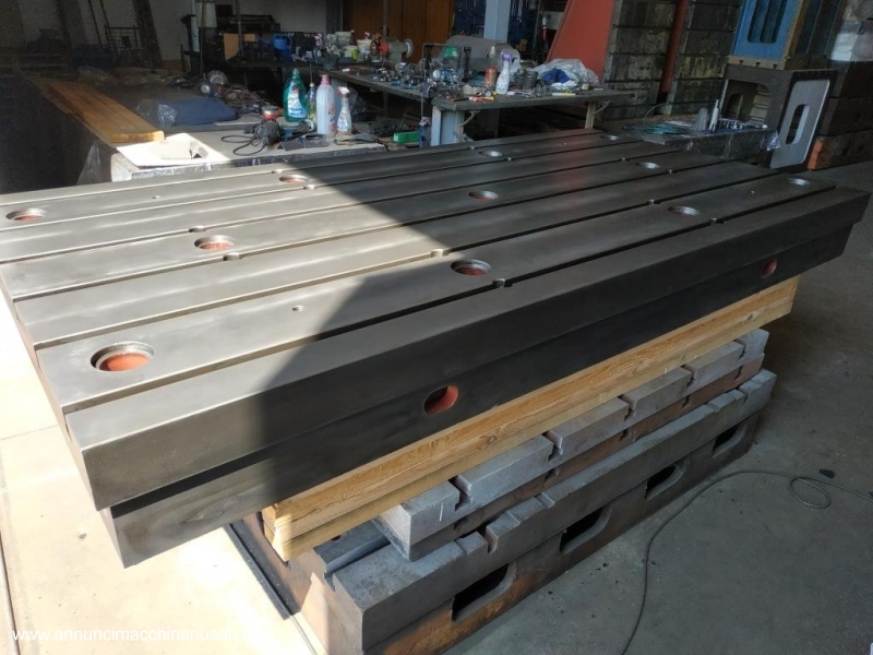 Piani Stolle in Ghisa con Cave a T per alesatrice Banchi per Carpenteria, Staffaggio, Saldatura, Macchine Utensili, Collaudo motori, Banchi da Lavoro , Piani-Stolle livellabili per Macchine Utensili , componibili tra di loro. Banchi per Saldatura in Ghisa ( Non si attaccano scorie / palline ). Dime di Riscontro ….. Piane / Piastre / Piattaforme in ghisa antivibrazioni. Dimensioni : Larghezza Step / passo 250 mm : da 1.000, 1.250 … a 3.000 mm Lunghezza Step / passo 500 mm : da 1.000, 1.500 … a 7.000 mm Inviaci la tua misura ideale. Grazie. La Max Machinery è specializzata in : - Attrezzature in ghisa usate e Nuove , Plani Stolle, Squadre, Cubi... di qualsiasi dimensione anche su nostro o vostro disegno. - Macchinari su misura di seconda mano ( Torni, Verticali, Fresatrici, Alesatrici, Tavole rototraslanti… con poche ore di lavoro ) - Istallazioni complete in garanzia.