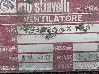 Ventilatore e motore per impianto aspirazione calzaturificio, suolificio, falegnameria dotato di ventola ad accoppiamento diretto SIRIO STIAVELLI da Hp 0,75 usato perfettamente funzionante , qualsiasi prova e verifica, solo ruggine superficiale in quanto era collocato sotto tetto esternamente, qualità 100% made in Italy. Le immagini sono reali del ventilatore e motore in vendita, non utilizziamo fotografie di repertorio o di altri inserzionisti. RIF.M54 Settore Attrezzature e Macchinari Produttore SIRIO STIAVELLI Dimensioni e ingombri CM. 60X50 Diametro entrata CM. 25 Diametro/Misura Uscita CM. 18x20 Motore Hp 0,75 Peso circa kg. 80 Colore nd Alimentazione 380 ANNO nd Stato USATO Provenienza ITALIA Conforme Norme CE NO Revisionato NO Garanzia NO Quantità n. 01 Prezzo 100,00 euro NON trattabile Resa F.CO F.CO NS MAGAZZINO Ubicazione Periferia di Pisa Disponibilità immediata SPEDIZIONE a partire da 100,00 euro Imballo Ventilatore e motore su Pallet a vista Fatturabile SI Modalità di Pagamento Bonifico bancario anticipato NON Facciamo spedizioni in contrassegno Se interessati lasciate i Vostri riferimenti e sarete contattati al più presto, messaggi senza numero di telefono e offerte a ribasso saranno automaticamente cestinati, quindi evitate di perdere tempo. Grazie L'annuncio è stato redatto affinché sia completo, comunque informazioni ed immagini possono includere errori e dimenticanze. Macchine e attrezzature inserzionate sono esclusivamente di nostra proprietà, fisicamente disponibili e visionabili presso i nostri magazzini con garanzia di autenticità delle fotografie. Esportiamo in South Africa, Guatemala, Zimbabwe, Kenya, Somalia, Etiopia, Camerun e Senegal possiamo aiutarvi per la spedizione direttamente nella vostra destinazione.