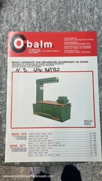 BANCO ASPIRANTE COBALM A FILTRO CON PULIZIA AD ACQUA