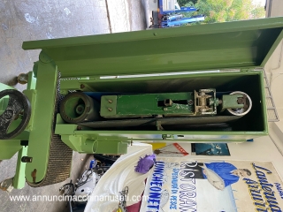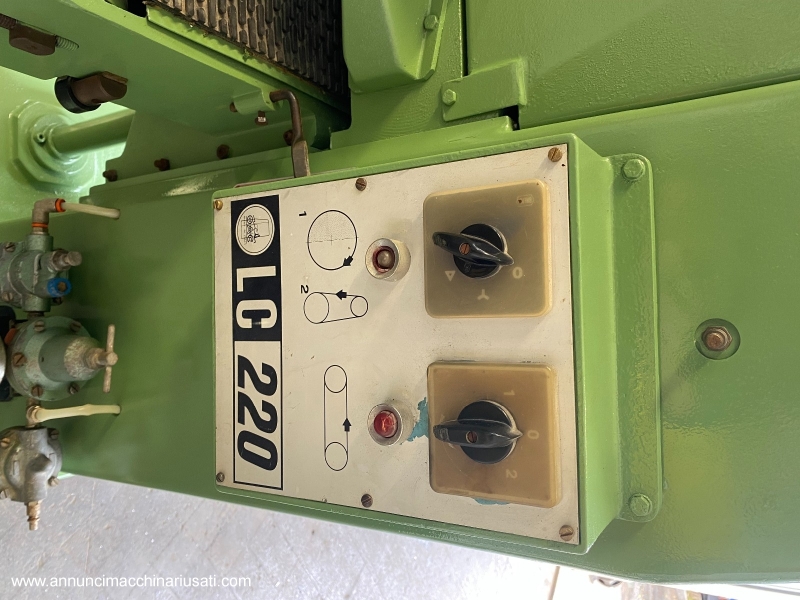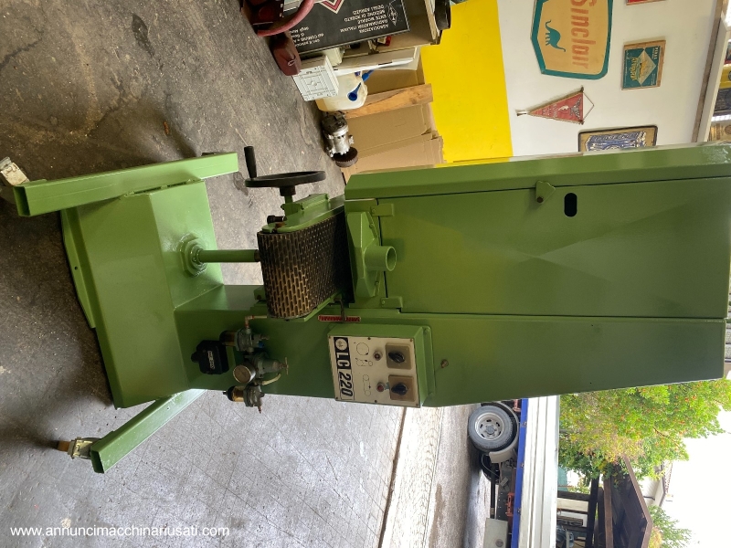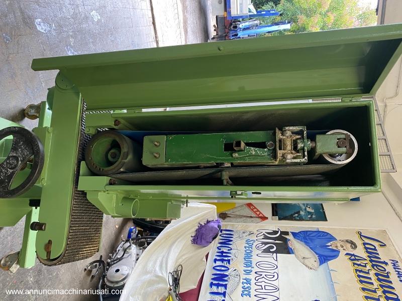 calibratrice-levigatrice ad un nastro con nastro da 220 mm ,tappeto a 2 velocità,rullo in gomma e tappeto in buono stato motore hp 6 volt 380 ,marca oac agazzani,no c.e. funzionante ,oscillazzione nastro pneumatica.