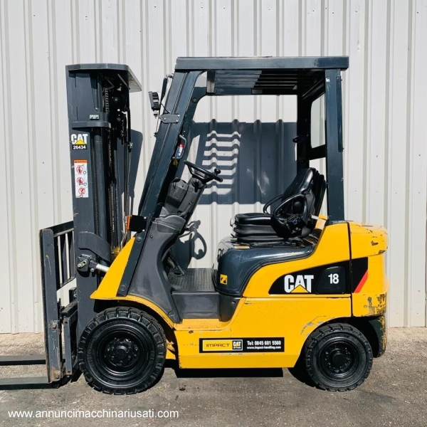 Muletto diesel usato Caterpillar modello DP18N, 1,8 tonnellate, anno 2015, 10041 ore, altezza max.- 4700mm
