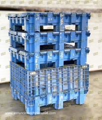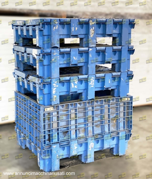 Contenitori o cassoni industriali in plastica richiudibili abbattibili marca JCOPLASTIC modello CTA 760-BOX usati. Sono impilabili o accatastabili ad incastro sia da aperti che da chiusi, hanno 6 piedi e due traverse. Misure mm 1200x1000 h760. Maggiori dettagli e richiesta prezzi solo dal nostro sito polycube(punto)it