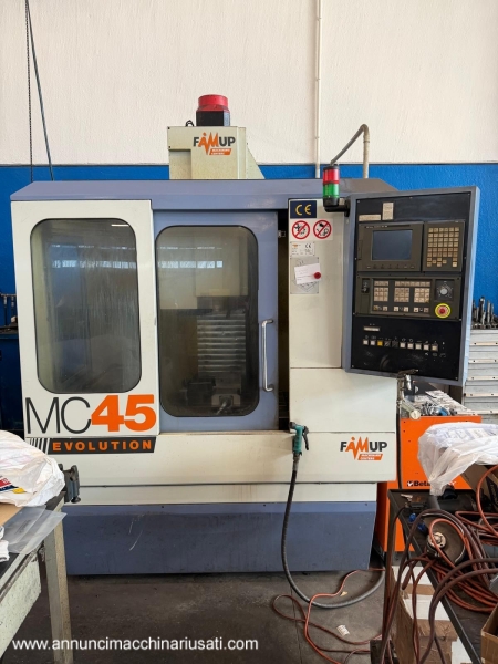 Centro di lavoro FAMUP Modello MC45 EVOLUTION Condizione Usato Corsa asse X 450 mm Corsa asse Y 300 mm Corsa asse Z 400 mm Distanza naso mandrino piano tavola 110-510 mm Mandrino 8000 rpm: 5,5 kw, ISO 3 Dimensione tavola 600x300 mm Max carico ammesso 150 kg Magazzino utensili RANDOM; 16 POS Diametro max utensile 63 mm Lunghezza max utensile 150 mm Peso max utensile 4 kg CONTROLLO FANUC 0-M Peso 2500 kg Ingombro 2100x2300x2300 mm Macchina CE