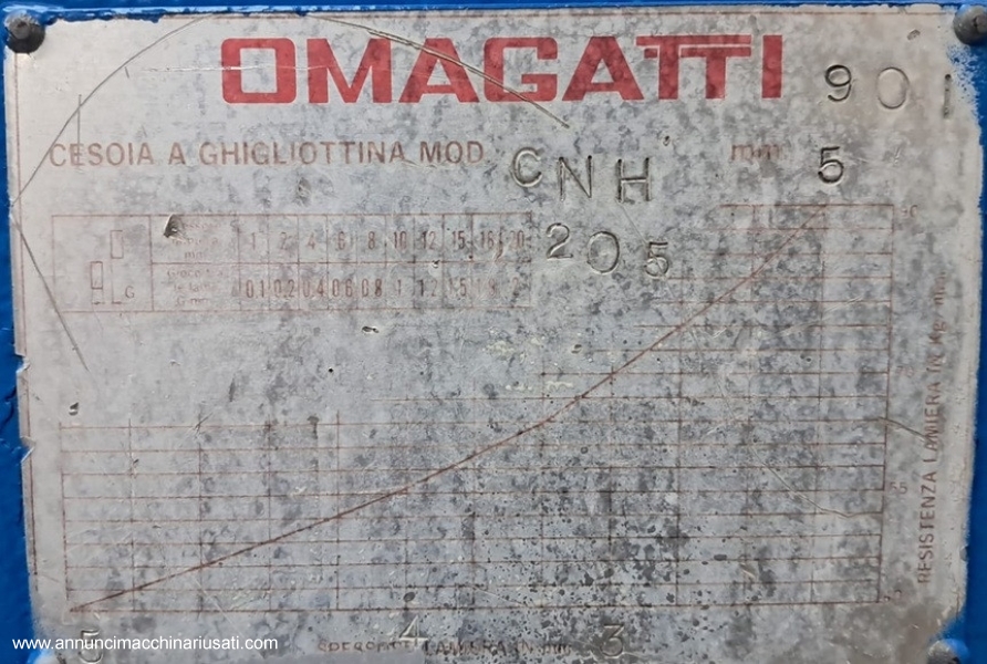 CESOIA OMAGATTI 2000 x 5 IDRAULICA MOD. CNH5 MACCHINA USATA CODICE INTERNO: CAR 152