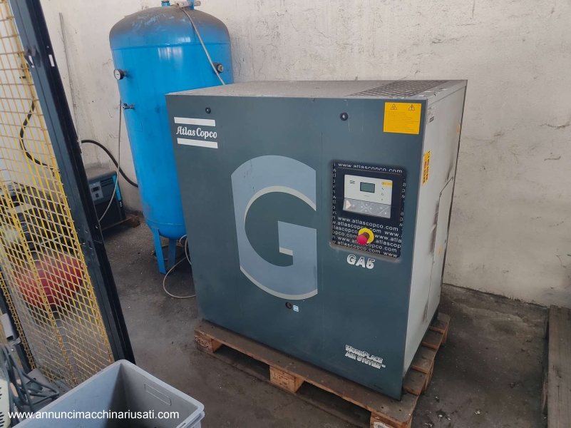 Vendesi compressore a vite Atlas Copco GA5P da 5.5 Kw - 7.5 CV. Anno 2020, pressione massima 10 bar, portata 42,5 m3/h circa. Richiesta Euro 3300,00 oltre iva. N.B.: essiccatore e serbatoio d'aria da 725 litri non compresi, da vendere a parte.