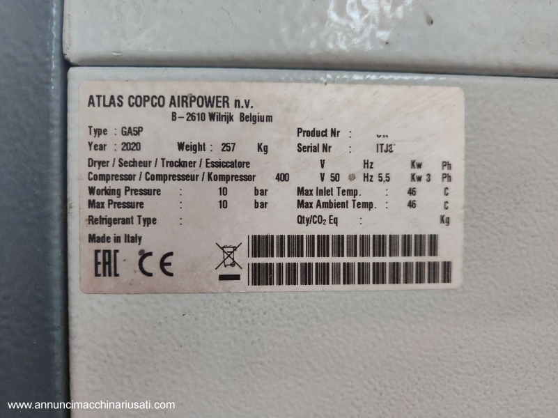 COMPRESSORE A VITE ATLAS COPCO 5.5KW ANNO 2020
