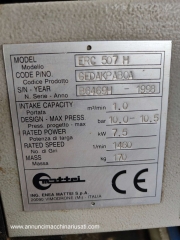 VISIBILE A RIVOLI (TO) Vendesi compressore rotativo a palette Mattei ERC 507 H. Potenza 7,5 Kw / 10 CV, portata 1.0 mc/min (oltre 10mila litri/min), pressione massima 10.5 bar. Dimensioni d'ingombro 120x50xH77 circa. Peso kg. 170 Anno 1998 - a norma CE, buone condizioni, solo da pulire. Euro 800,00 oltre iva