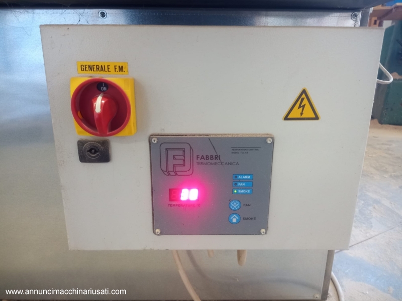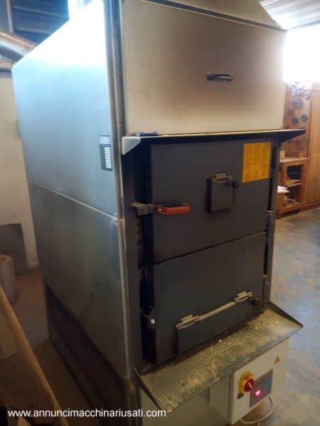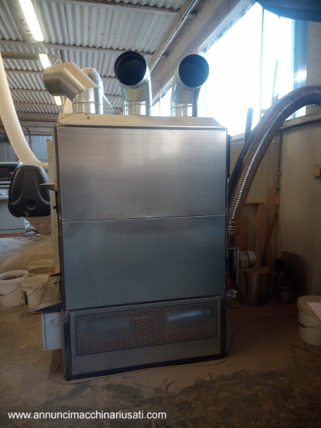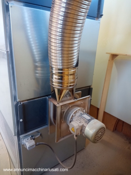 Generatore di aria calda FABBRI modello F120: - per superfice indicativa da riscaldare mq 500-600 circa (o metri cubi 3000 circa) - potenza nominale focolare 150.000 kcal/h - potenza termica resa 120.000 kcal/h - portata aria 8900 mc/h - ventilatore aria hp 3 - ventola per fumi hp 0,75 - diametro tubi aria 3 x D=250mm - diametro camino D=200mm - dimensioni di ingombro circa mt 1,7 x 1 , h=2 - peso circa kg 615 Anno 2018 , a normative CE Disponibilità da giugno 2026