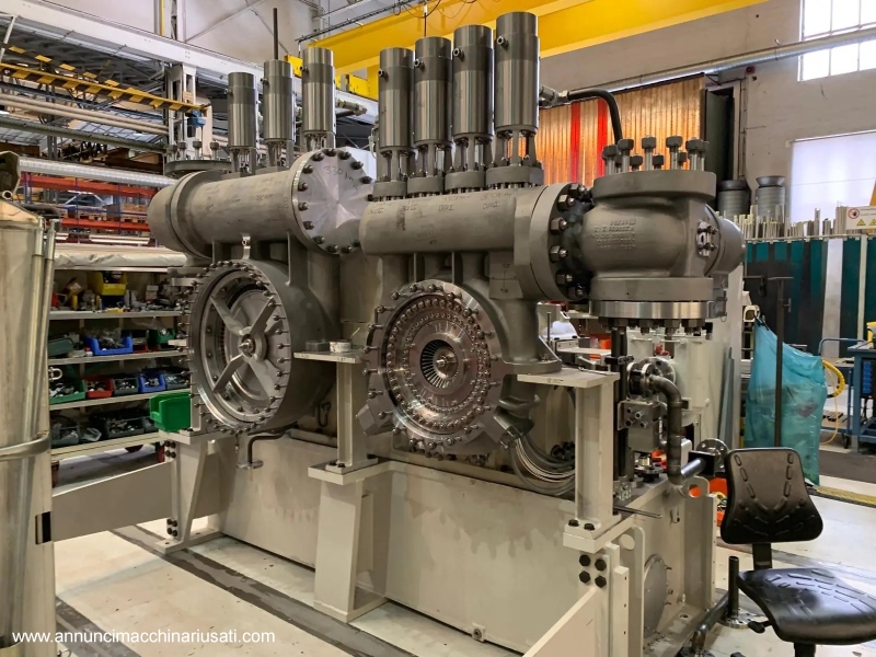 🔹 Turbogeneratore a vapore KK&K TWIN CA46 – Howden NUOVO | Ancora in garanzia del produttore | Imballo originale | Disponibilità immediata A seguito di revisione della strategia aziendale di lungo periodo, è disponibile con consegna immediata un turbogeneratore a vapore industriale Howden – modello KK&K TWIN CA46, nuovo, mai installato né avviato, fornito completo secondo offerta originale Howden. La macchina è già prodotta, collaudata a livello OEM e conservata in ambiente chiuso, consentendo di azzerare i normali tempi di produzione tipici di questo tipo di apparecchiatura. La fornitura comprende: turbina a vapore su skid con riduttore integrato generatore sincrono fornito separatamente ⚙️ Configurazione tecnica Tipologia Turbina a vapore TWIN CA46 Due corpi turbina separati (Steam Part A + Steam Part B) Riduttore integrato a 3 alberi (2 pignoni + ruota centrale) Estrazione di vapore controllata tra parte HP e LP (inclusa) Condizioni di progetto Parte A – HP Pressione ingresso: 16 bar(a) Temperatura ingresso: 400 °C Pressione scarico: 2,5 bar(a) Portata: 10.000 kg/h Parte B – LP Pressione ingresso: 2,4 bar(a) Temperatura ingresso: 223 °C Pressione scarico: 0,3 bar(a) (condensazione / vuoto) Portata: 5.000 – 10.000 kg/h ⚡ Prestazioni elettriche Velocità uscita riduttore: 1.500 rpm Potenza meccanica all’accoppiamento: fino a 1.658 kW Potenza elettrica ai morsetti: fino a 1.595 kW 🔌 Generatore elettrico (fornito separatamente) Generatore sincrono trifase Potenza nominale: 1.994 kVA Tensione: 6 kV Frequenza: 50 Hz Fattore di potenza: 0,8 Velocità nominale: 1.500 rpm Rendimento: fino a 96,19% Grado di protezione: IP44 R Raffreddamento: IC31 – aria, auto-ventilato Esecuzione brushless con eccitazione integrata Predisposto per funzionamento in parallelo alla rete 🛢️ Accessori inclusi Sistema olio integrato nel basamento (lubrificazione e controllo) Pompa olio principale meccanica Pompa olio ausiliaria elettrica Scambiatore olio raffreddato ad acqua Filtro olio duplex Basamento skid con serbatoio olio integrato Giunto elastico con carter di protezione 🎛️ Controllo, protezioni e quadri Regolatore elettronico di velocità SC901 Controllo pressione vapore vivo Controllo pressione vapore di estrazione Dispositivo indipendente di protezione fuori-giri Funzionamento: in parallelo alla rete in isola Quadro locale su skid Quadro di controllo e protezione separato Siemens SIPROTEC 5 Interfaccia PROFINET Modello di simulazione turbogeneratore ENC-RfG incluso Valvole automatiche di drenaggio (fornite sciolte) 🔧 Applicazioni tipiche Impianti di cogenerazione industriale Recupero energetico da vapore di processo Impianti a biomassa e waste-to-energy Produzione combinata di energia elettrica e vapore di servizio ⭐ Punti di forza Macchina nuova, mai installata né avviata Disponibilità immediata → eliminazione dei tempi di produzione (circa 2–3 anni) Soluzione OEM completa, secondo fornitura originale Howden Alta flessibilità di esercizio (parallelo rete / isola, estrazione vapore) Ideale per progetti con tempistiche strette o revamping impianti esistenti 📦 Stato e condizioni Stato: NUOVO Anno di produzione: fine 2024 Mai installato – mai avviato Conservato in ambiente chiuso Documentazione tecnica Howden completa disponibile Possibilità di installazione e avviamento in loco da parte del produttore 💰 PREZZO: Trattativa riservata Ulteriori informazioni tecniche e documentazione disponibili su richiesta.