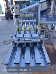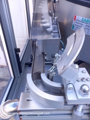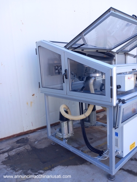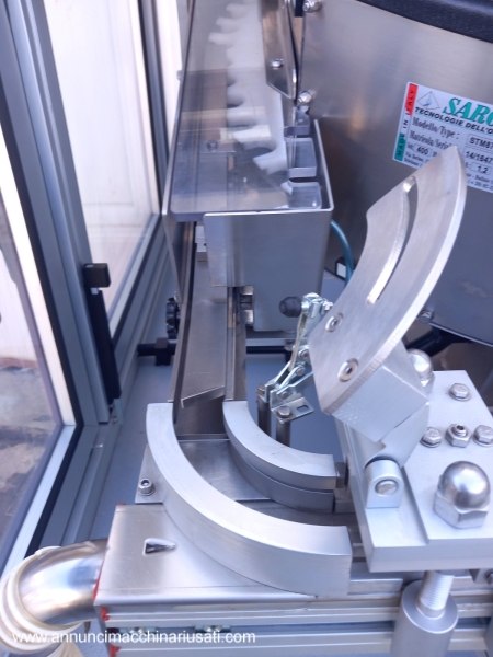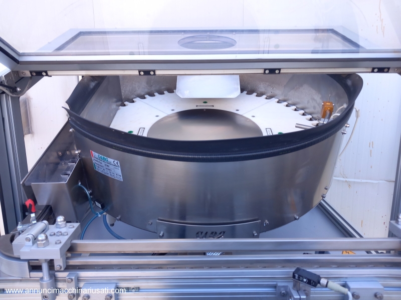 TIPOLOGIA DEL MACCHINARIO: Orientatore a Vibrazione Meccanica SETTORE DI IMPIEGO: Confezionamento, Automazione, Assemblaggio PECULIARITA': L'Orientatore a Vibrazione Meccanica SARG è progettato per ottimizzare l'automazione nei processi di confezionamento e assemblaggio. La sua robustezza e affidabilità garantiscono un funzionamento continuo e preciso, con un'alimentazione automatica di componenti. Il sistema è in grado di orientare e alimentare capsule con una capacità produttiva di 40 unità al minuto, mantenendo un'efficienza elevata nelle linee di produzione. SPECIFICHE TECNICHE: Peso: 705 kg Potenza Elettrica: 3 kW Voltaggio di Alimentazione: 400 (3P+N+T) V / 50 Hz Assorbimento di Corrente: 5,9 A Pressione Aria (Consumo): 6 bar (275 Nl/min) Capacità Produttiva: 40 unità/min Ingombro: 3250 x 1530 x H1900 mm