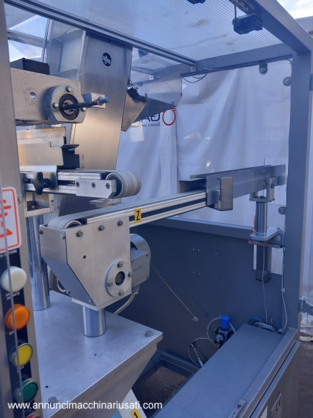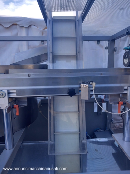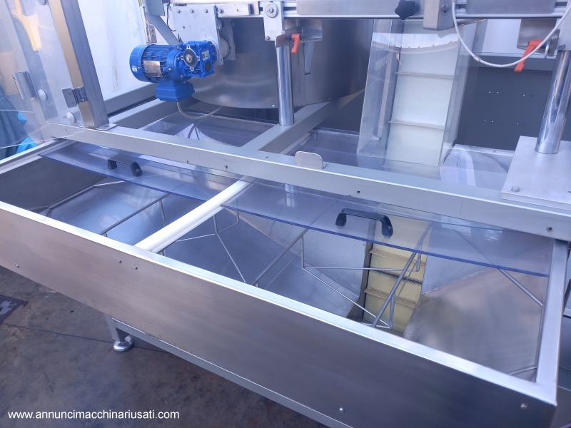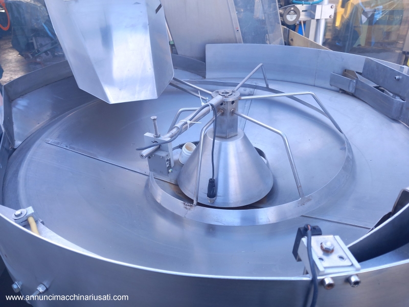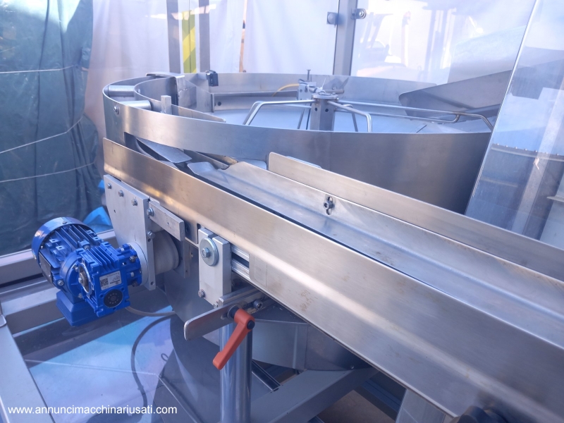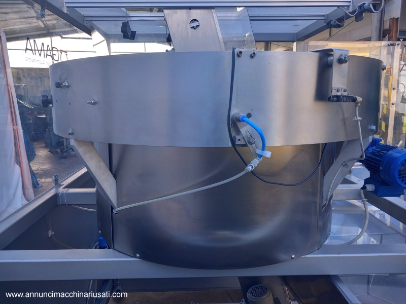 TIPOLOGIA DEL MACCHINARIO: Alimentatore/Orientatore per Flaconi SETTORE DI IMPIEGO: industria farmaceutica, industria cosmetica PECULIARITA': Il sistema è progettato per prelevare flaconi da una tramoggia e orientarli correttamente prima di inviarli al processo successivo tramite un nastro di uscita. Struttura robusta chiusa, pannelli in acciaio inossidabile e protezioni trasparenti per visibilità interna. Predisposizione per l'uscita del prodotto dalla parte posteriore, offrendo flessibilità di integrazione nella linea di produzione. ANNO: 2023 Tipologia Prodotto Trattato: Flaconi con Nastro di Risalita Elevato, Largo, Profondo (Spaletta) 200 mm Tensione di Alimentazione: 380 V (Trifase) Frequenza: 50 Hz Corrente Assorbita: 5 A Ingombro (L x P x H): 2400 mm x 1700 mm x 2070 mm Peso: Circa 350 kg