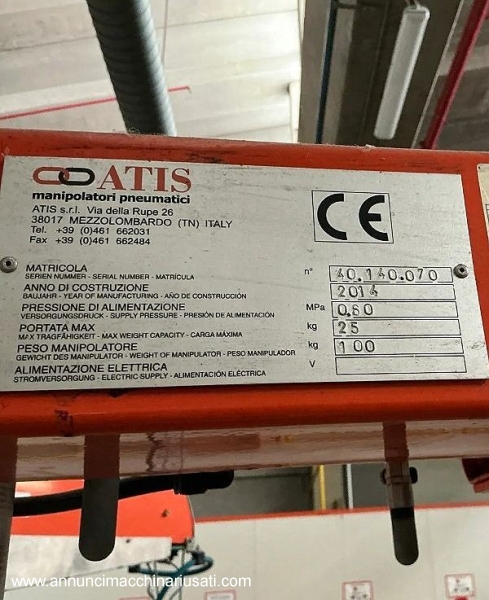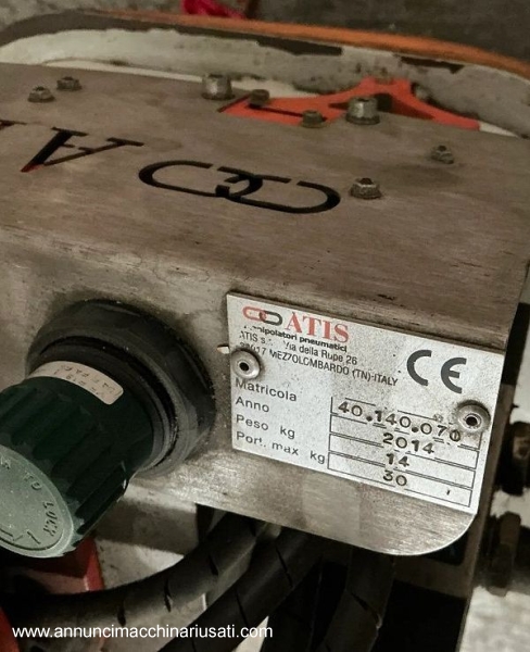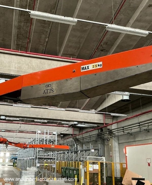 Manipolatore pneumatico Atis portata 25 kg, come nuovo e con documenti e CE. Altezza 2600 mm Lunghezza braccio 4000 mm Dimensione base 1000 x 1000 e non necessita fissaggio a terra.