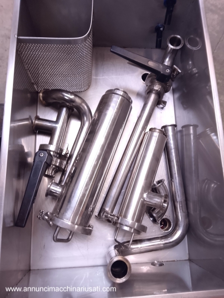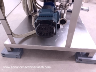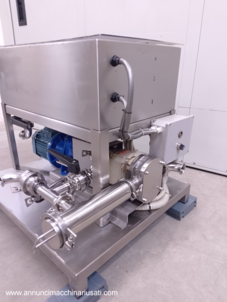 TIPOLOGIA DEL MACCHINARIO: Pompa a lobi con vasca di pescaggio integrata SETTORE DI IMPIEGO: Farmaceutico, chimico, cosmetico, alimentare, dispositivi medici, manifatturiero PECULIARITA': La pompa a lobi OMAC Mod. B110 5600 GU è una soluzione robusta e affidabile per il trasferimento di fluidi ad alta viscosità, progettata per applicazioni industriali e alimentari. Il gruppo è assemblato su telaio in acciaio inox con vasca di pescaggio integrata, che facilita l’alimentazione continua del prodotto e garantisce un flusso uniforme verso la pompa. L’unità è equipaggiata con motore ABB e organi idraulici in acciaio inox, idonei al trattamento di creme, paste e prodotti semidensi. La configurazione compatta e igienica la rende adatta a linee di produzione che richiedono facilità di lavaggio, affidabilità e controllo stabile del processo di trasferimento. ANNO: 2006 Tecnologia di pompaggio: Pompa a lobi Alimentazione motore: 380 V Motore: ABB Motors, trifase, IP55 Giri nominali: 2740 r/min Classe isolamento: F Dimensioni (LxPxH): 800 × 700 × h. 700 mm Peso: 60 kg