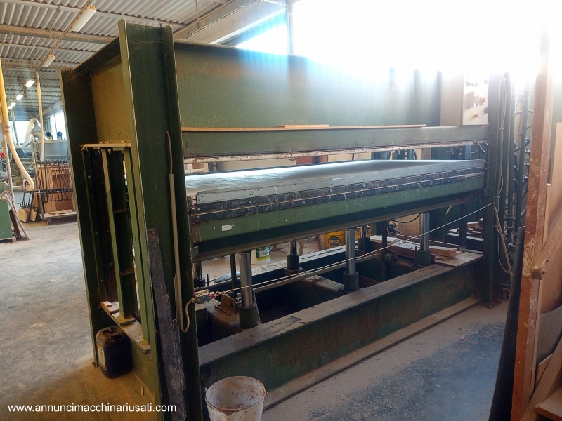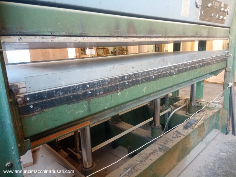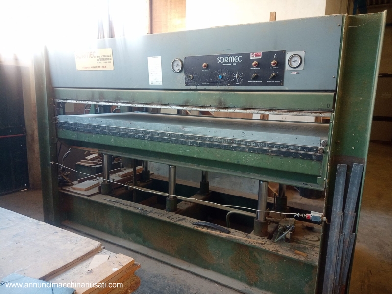 Pressa a caldo SORMEC con: - piani assemblati da 3000x1300mm - 2 piani intermedi / 3 vani di carico - 6 pistoni idraulici inferiori, corsa 600m - pistoni idraulici per listellare montati sul lato 1300mm - con boiler elettrico ad acqua Macchina non a normative CE, per export VISIBILE INSTALLATA E FUNZIONANTE FINO A GIUGNO 2026