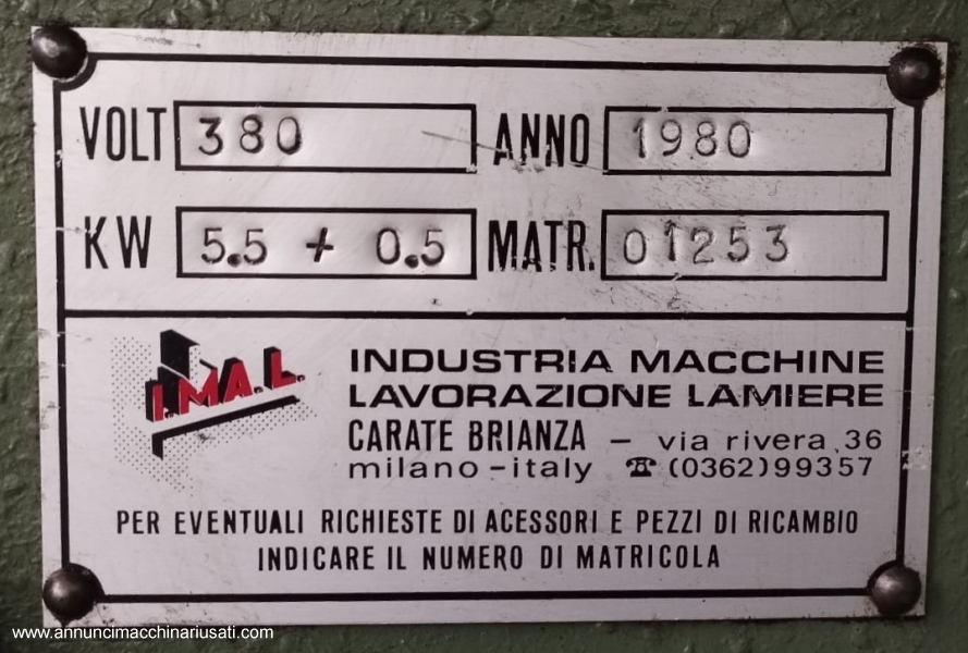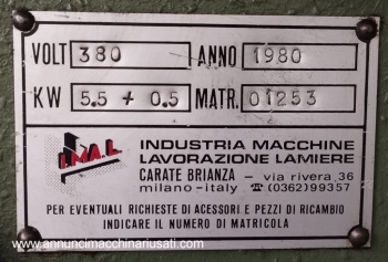 Pressa Piegatrice IMAL Lunghezza Max Piega 3.000mm Potenza 50 Ton USATO in OTTIME condizioni PREZZO SU RICHIESTA CODICE ARTICOLO 00056