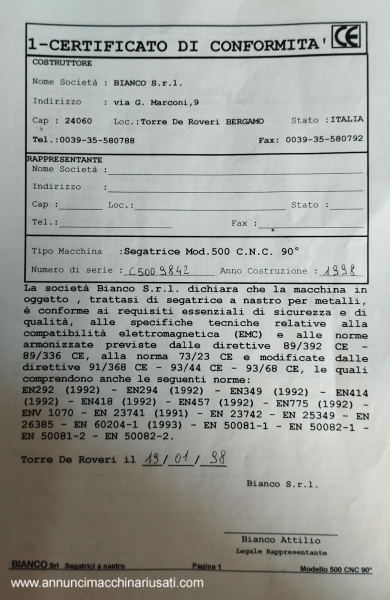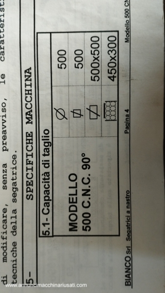 Sega a Nastro BIANCO 500 CNC 90° USATA