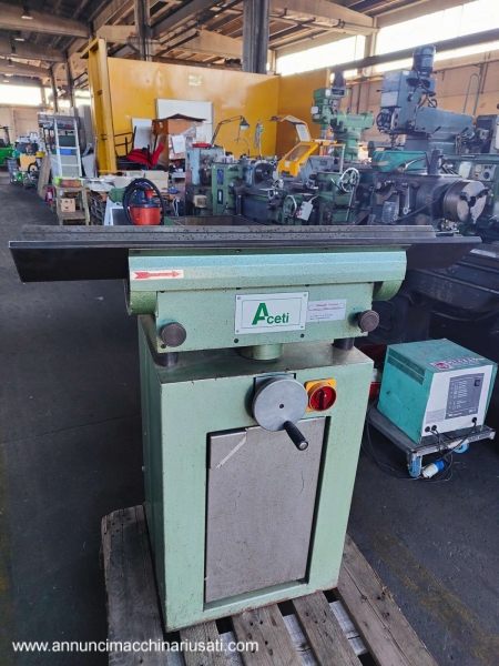 VISIBILE A RIVOLI (TO). Vendesi smussatrice marca Aceti. Piano da mm 1000x120, smusso registrabile da 15 a 45 gradi. Alimentazione 380V. Dimensioni d'ingombro cm 100x60xH105circa. Richiesta Euro 450,00 oltre iva.