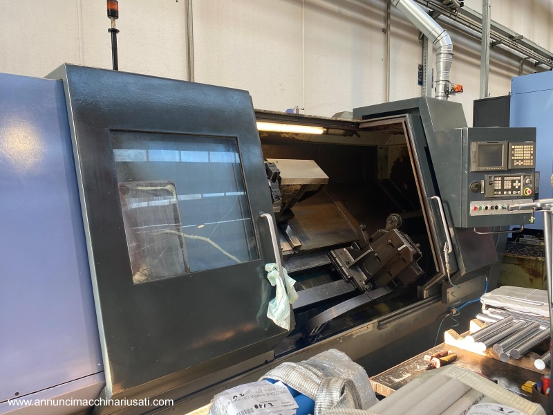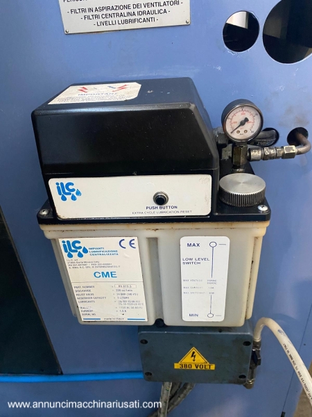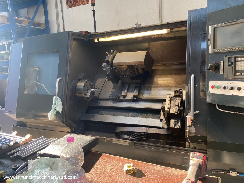 Tornio orizzontale CNC a 2 assi a norme CE usato dotato di controllo numerico FANUC 21i-T INSTALLAZIONE MACCHINA: anno 1998 ACCESSORI MACCHINA: -Lunetta idraulica -Evacuatore trucioli -Manuali d'uso e dich. CE Specifiche Produttore PADOVANI Modello LABOR 185 CNC Anno 1998 Condizione Usato Numero di serie Rif. etichetta macchina Numero di magazzino T98151025 Max diametro ammissibile sul banco 580 mm Max diametro tornibile tra le punte 400 mm Max lunghezza tornibile tra le punte 1500 mm Naso mandrino ASA 8" Passaggio barra 109 mm Velocità rotazione mandrino 20-3500 min/-1 Corsa asse X 310 mm Corsa asse Z 1520 mm Velocità in rapido (X/Z) 20 m/min Stazioni torretta 12 posizioni (VDI 40) Contropunta girevole incorporata C.M.4 Potenza motore mandrino 22 kW Peso macchina 7200 Kg
