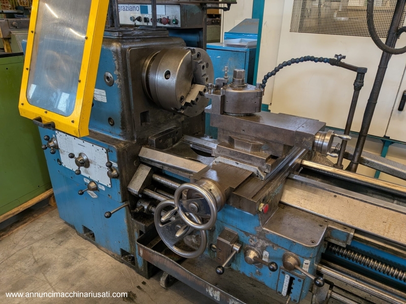 MARCA GRAZIANO MODELLO SAG 22 ALTEZZA PUNTE 290 MM LUNGHEZZA BANCO 2000 MM LUNGHEZZA TORNIBILE 1500 MM PASSAGGIO BARRA 90 MM CON MANDRINO 3 GRIFFE DIAMETRO 300 MM ACCESSORI PORTA UTENSILI CAMBIO RAPIDO, MANDRINO 4 GRIFFE INDIPENDENTI DIAMETRO 500 MM, CONTROPUNTA, LUNETTA, PROTEZIONI