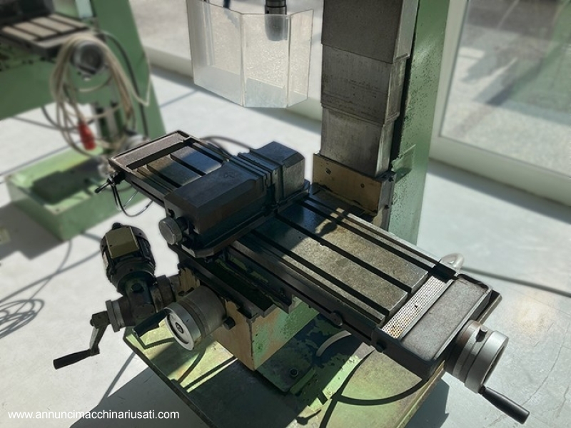 Trapano Fresa Usato FAMUP TCS TC VR – Macchina Professionale da Officina Il FAMUP TCS TC VR è un trapano fresa usato progettato per offrire precisione, affidabilità e versatilità nelle lavorazioni meccaniche. Perfetto per officine e laboratori di precisione, questo macchinario è ideale per forature e fresature su una vasta gamma di materiali metallici. Caratteristiche principali: Capacità di foratura: fino a 40 mm, adatta per pezzi di varie dimensioni. Distanza colonna – centro mandrino: 293 mm, per un comodo accesso e lavorazioni precise. Dimensioni tavola: 800x225 mm, garantisce un’area di lavoro stabile e sicura. Attacco mandrino: CM 4, compatibile con utensili standard. Velocità mandrino: regolabile da 40 a 2540 giri/min, per adattarsi a materiali e lavorazioni diverse. Alimentazione: 400 V, con potenza motore variabile tra 2,2 e 3 kW. Funzione di discesa automatica, per una lavorazione più rapida e controllata. Dimensioni macchina: circa 1300x1350 mm, altezza 2000 mm; peso: 780 kg. Accessori inclusi: morsa pneumatica per fissaggio preciso dei pezzi. Vantaggi della macchina: Il FAMUP TCS TC VR combina robustezza e precisione, garantendo risultati professionali anche in lavori continuativi. La regolazione variabile del mandrino e la tavola ampia lo rendono versatile e adatto a diverse tipologie di foratura e fresatura. Settori di utilizzo: Officine meccaniche Laboratori di precisione Lavorazioni industriali su metalli e leghe Acquistare un trapano fresa usato come il FAMUP TCS TC VR significa investire in una macchina affidabile, pronta per lavorare e con un ottimo rapporto qualità-prezzo.