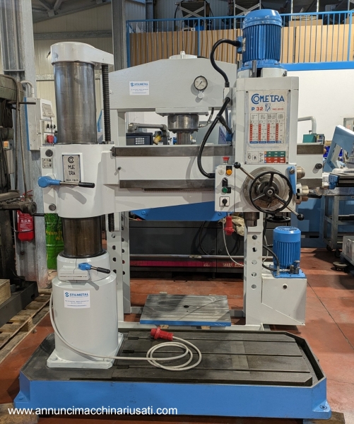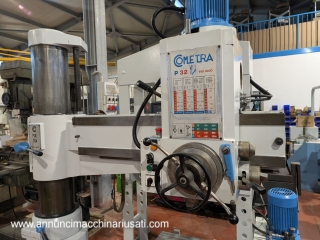 TRAPANO RADIALE COMETRA P 32 COMPLETA DI CUBO CAPACITA' DI FORATURA ACCIAIO 32 GHISA 42 CORSA MANDRINO 240 CONO MORSE 4 GIRI 39/1700 SBRACCIO UTILE 1000 SPOSTAMENTO BRACCIO IN ALTEZZA 660 SPOSTAMENTO LONGITUDINALE TESTA 760 MACCHINA CON MANUALE USO E MANUTENZIONE