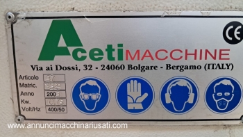 SBAVALAMIERA ACETI ART 37 anno 2003 velocita max mola 18 diametro ruota lamellare: diam estreno : 250 mm diam interno: 100 mm spessore : 50 mm dimensione piano : 150 x 1000- spessore lamiera 0-3 mm macchiana usata codice interno: svr 354