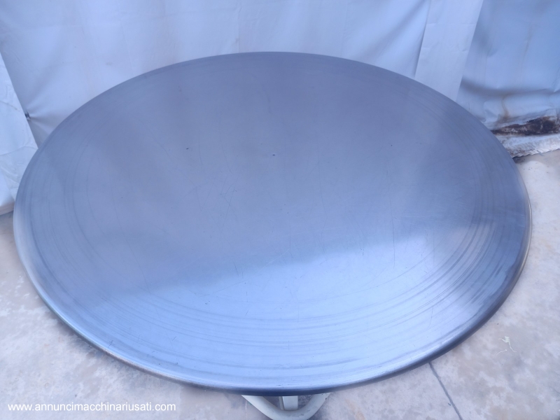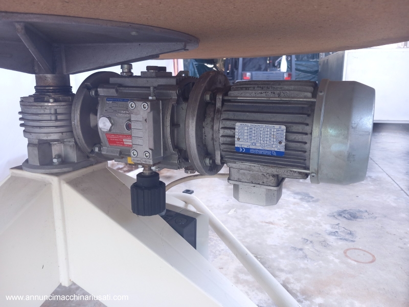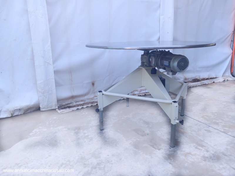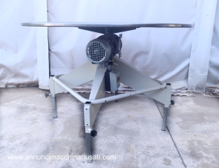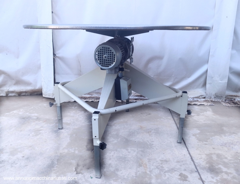 TIPOLOGIA DEL MACCHINARIO: Tavolo Rotante Motorizzato di tipo industriale. SETTORE DI IMPIEGO: Alimentazione, Imballaggio, Assemblaggio, Ispezione. PECULIARITA’: Caratterizzato da un piatto rotante in acciaio inossidabile, supportato da una struttura robusta in metallo con piedini livellatori. L'azionamento è gestito da un Motore Asincrono Trifase NERIMOTORI (potenza variabile, es. 0.44kW a 230V), accoppiato a un Variatore di Velocità meccanico VAR-SPE. Questa configurazione consente la regolazione continua della velocità di rotazione del piatto, rendendolo ideale per applicazioni in linee di produzione che richiedono un posizionamento controllato e variabile. Tensione: 380 Volt Dimensioni: dia. 1200 x h. 800 mm Peso: 80 kg