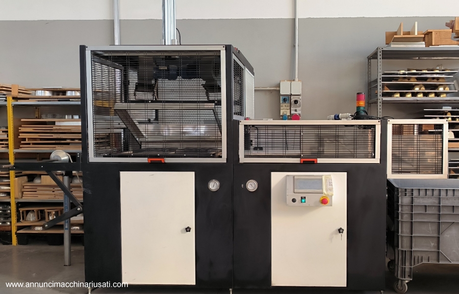 ماكينة تشكيل حراري من ريبامونتي، تغذية باللفائف، محطة واحدة، 700 × 500 مم، تحكم منطقي قابل للبرمجة. سنة الصنع: 2006. ماكينة تشكيل حراري أوتوماتيكية أو نصف أوتوماتيكية، تغذية بالصفائح، 750 × 550 × 150 مم، مزودة بلوحة تسخين واحدة مع مناطق الأشعة تحت الحمراء، تحكم منطقي قابل للبرمجة، صفيحة قالب مبردة، قالب مضاد، كرة قابلة للتعديل، ومشابك سحب. بيعت بسبب توقف العمل مقابل 20,900 يورو. جاهزة لأي اختبار، تباع في شمال إيطاليا. ملاحظة: مصنع إنتاج التشكيل الحراري كامل للبيع، مزود بآلات تغذية بالصفائح واللفائف.