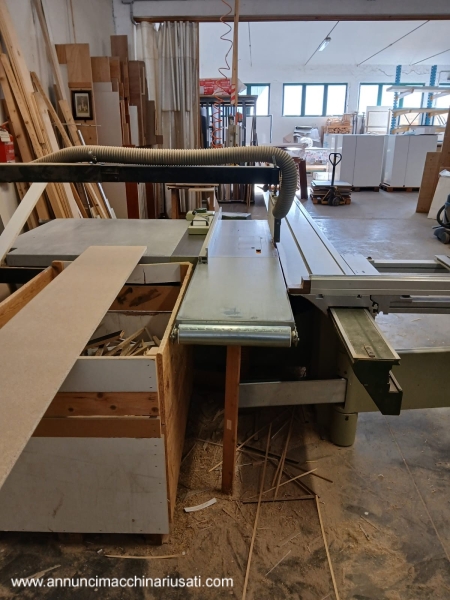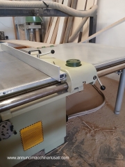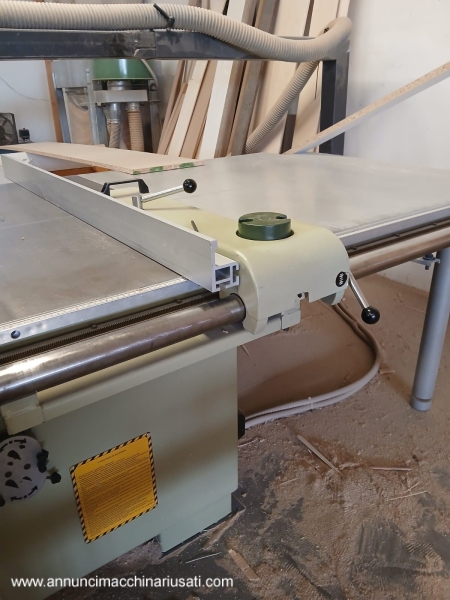 آلة تربيع المنشار الدائري SCM SI3800: - عربة ألومنيوم عالية الدقة 3800 مم - لوحة تحكم على دعامة متحركة دوارة - رفع آلي لوحدة الشفرة، مع شاشة رقمية - إمالة آلية لوحدة الشفرة، مع شاشة رقمية - دليل متوازي مع تعديل يدوي، عرض مفيد 1270 مم - أقصى قطر للشفرة الرئيسية 400 مم - قطر شفرة التسجيل 120 مم - محرك الشفرة الرئيسية كيلو وات 5.5 / حصان 7.5 - شفرة تسجيل مستقلة بمحرك 1 كيلو وات 0.75 / حصان - أزرار بدء تشغيل المحرك أيضًا على رأس العربة سنة الصنع 1995، متوافقة مع معايير CE متوفرة من يناير 2026