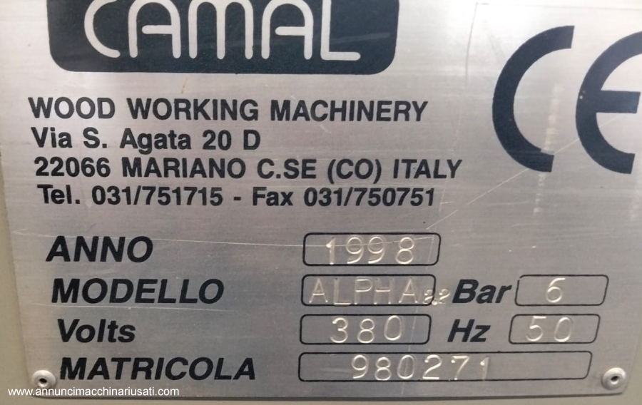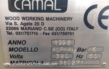 Bordatrice Automatica CAMAL ALPHA 2.2 Per bordi di impiallacciatura PVC, Abs, legno Vasca colla, gruppo cesoia, gruppo intestatori, Gruppo refilatori, gruppo spigolatori nclinabili USATO in OTTIME condizioni PREZZO SU RICHIESTA CODICE ARTICOLO 00017