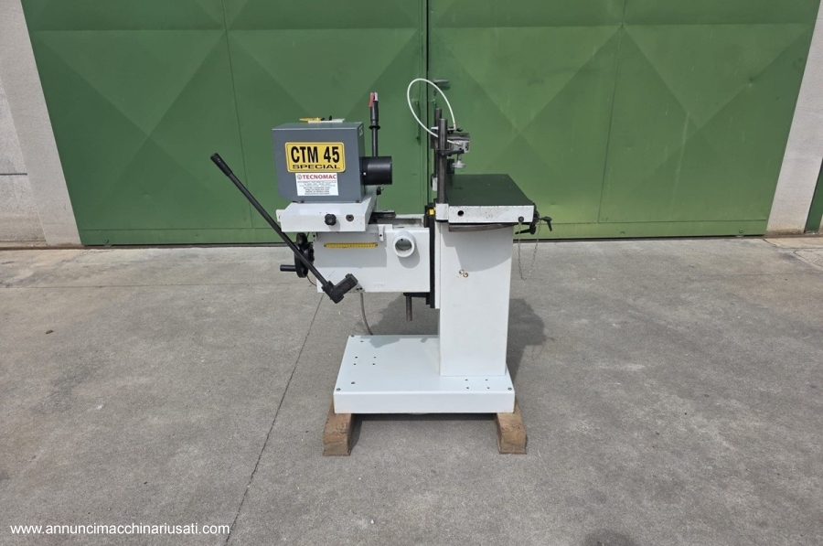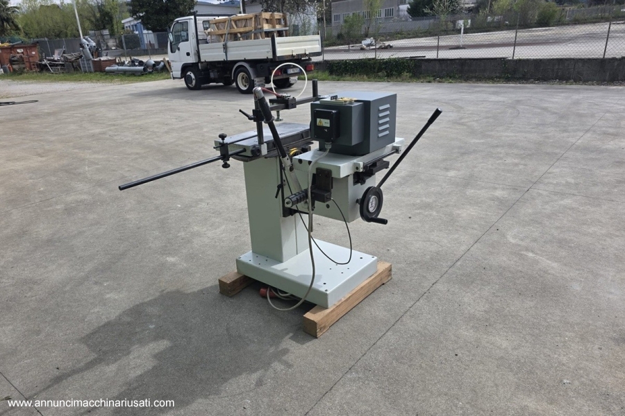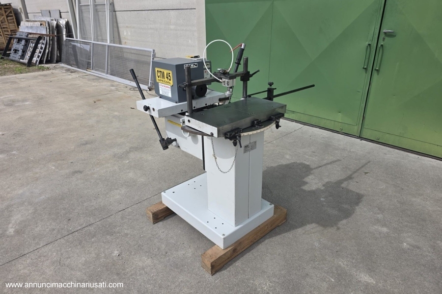 CAVATRICE A UNA PUNTA CON PIANO GIREVOLE E TESTA MOBILE Produttore: MCM Modello: CTM 45 S Codice: CAV-033 Macchina usata – V380/50 – “CE” Dimensioni piano di lavoro: 580 x 285 mm Piano girevole: + / – 60° Lunghezza MAX della cava: 250 mm Profondità MAX della cava: 180 mm Gruppo per foratura interasse Potenza motore: 3 HP