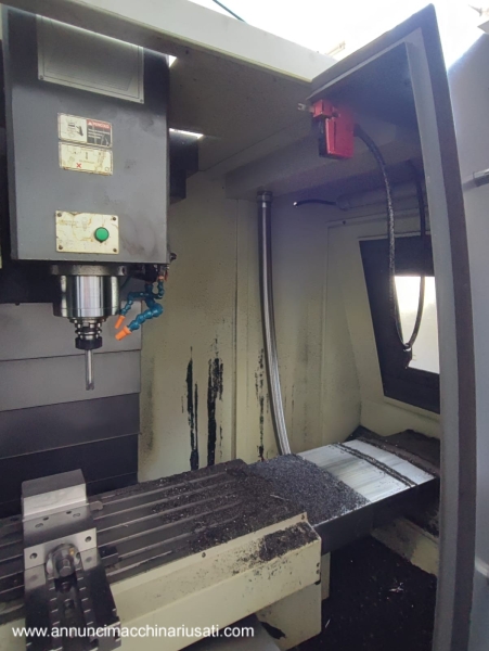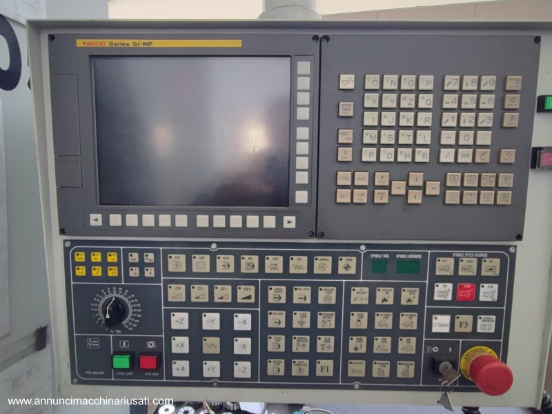 Centro di lavoro verticale a 3 assi CNC a norme CE dotato di controllo numerico Fanuc 0i-MF INSTALLAZIONE MACCHINA: anno 2021 ACCESSORI MACCHINA: -Alta pressione al mandrino -Frigo testa mandrino -N.3 coclee interne per il convogliamento dei trucioli -Evacuatore trucioli laterale a coclea -Manuali e dichiarazione CE -Macchina a guide piane in turcite Corsa asse X 1050 mm Corsa asse Y 550 mm Corsa asse Z 550 mm Dimensioni tavola 1250x520 mm Carico sulla tavola 600 Kg Attacco mandrino ISO 40 Velocità di rotazione 10000 min-1 Potenza motore mandrino 11/15 kW Magazzino utensili (a disco con braccio di scambio) 24 nr Dimensioni della macchina 2820x2415xH2520 mm Peso macchina 5000 Kg