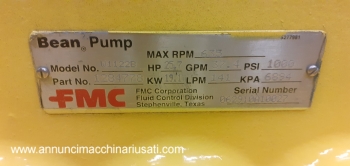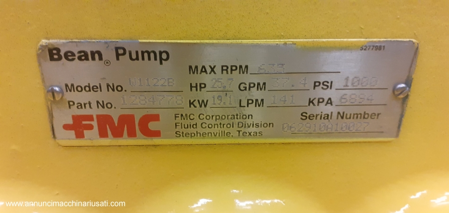Zu verkaufen: 1 FMC Bean Pump W1122B Wasserpumpe ... 3 Kolben ... max. Fördermenge 140 Liter/Minute ... max. Förderdruck 69 bar ... laut Typenschild ... neu ... unbenutzt ... inklusive einstellbarem Maximaldruckventil und Manometer ... Restposten ... Preis auf Anfrage