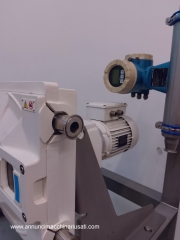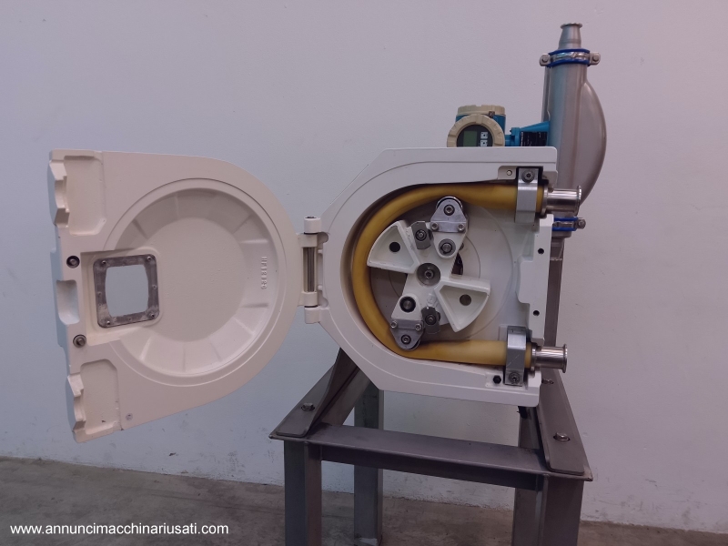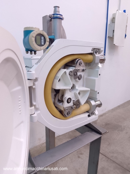 MASCHINENTYP: Schlauchpumpe mit integriertem Durchflussmesser. ANWENDUNGSBEREICHE: Pharmazeutische, chemische, kosmetische, Lebensmittel-, Nahrungsergänzungs-, Medizinprodukte- und Fertigungsindustrie. BESONDERE MERKMALE: Die Schlauchpumpe Watson-Marlow ist für die kontrollierte Dosierung und Förderung von Flüssigkeiten konzipiert und gewährleistet dank des Schlauchprinzips einen hygienischen Betrieb, da der direkte Kontakt zwischen Flüssigkeit und mechanischen Teilen vermieden wird. Ausgestattet mit einem leistungsstarken Pumpenkopf und einem elektromagnetischen Durchflussmesser ermöglicht sie eine präzise Überwachung und optimale Durchflussregelung. Die robuste Bauweise eignet sich für Festinstallationen und hygienische Anschlüsse und ist ideal für chemische, lebensmittel- und pharmazeutische Flüssigkeiten. Durchflussrate: abhängig vom Durchmesser des installierten Rohrs und der Drehzahl. Betriebsdruck: bis ca. 4 bar (variabel je nach verwendetem Rohr). Durchflussmessung: integrierter elektromagnetischer Durchflussmesser. Drehzahlregelung: ja. Motorisierung: Drehstrom. Stromversorgung: 380–415 V, 3 Ph, 50 Hz. Abmessungen (L x B x H): 700 x 700 x 1056 mm. Gewicht: 80 kg. PROGITEC MTP Srl • Mechanische Technologieprozesse