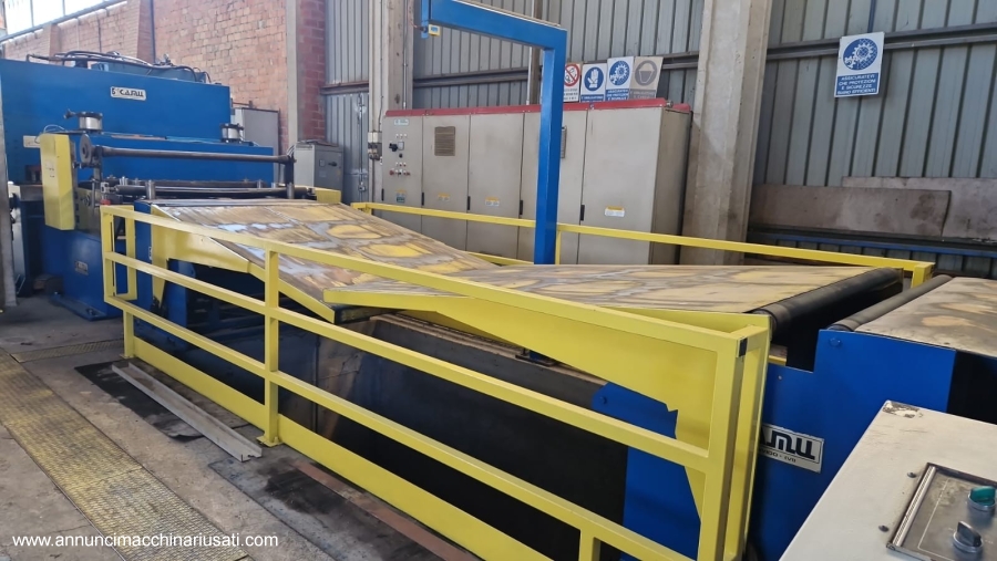 Width ( mm ) 1550 Thickness ( mm ) 0.5-3 Reel type Cantilever Reel capacity ( ton ) 20 Accessories flying shear External diameter ( mm ) 1800 Internal diameter ( mm ) 508 Straightening rollers 19 Speed ​​( m/1° ) 60 Year of construction 2000