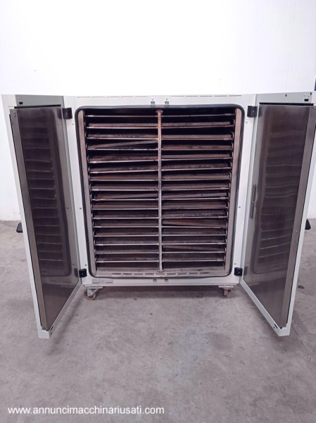 PRODUCT DESCRIPTION: Professional drying oven for heating and heat treatment applications. INDUSTRY OF USE: Pharmaceutical, chemical, cosmetic, food, dietary, medical device. SPECIAL FEATURES: The Binder FED 720 drying oven is designed to ensure temperature uniformity and operational reliability. The forced convection system ensures even heat distribution, making it ideal for drying samples and technical materials. With electronic temperature control up to 300°C, it offers high precision and operational stability. The robustness of the structure allows continuous use in laboratories and production environments, compliant with European regulations and with CE marking. Maximum temperature: 300 °C Power supply: 400 V – 3N – 50/60 Hz Installed power: 5.0 kW Nominal current: 10.9 A Degree of protection: IP20 Safety class: Class 2.0 Reference standard: DIN 12880 Construction: internal steel chamber, industrial structure Marking: CE Number of tray holder compartments: 32 Number of trays: 32 Tray dimensions: 550 × 480 × 20 mm Tray hole diameter: 4 mm Oven compartment dimensions: 1000 × 630 mm Weight: 180 kg