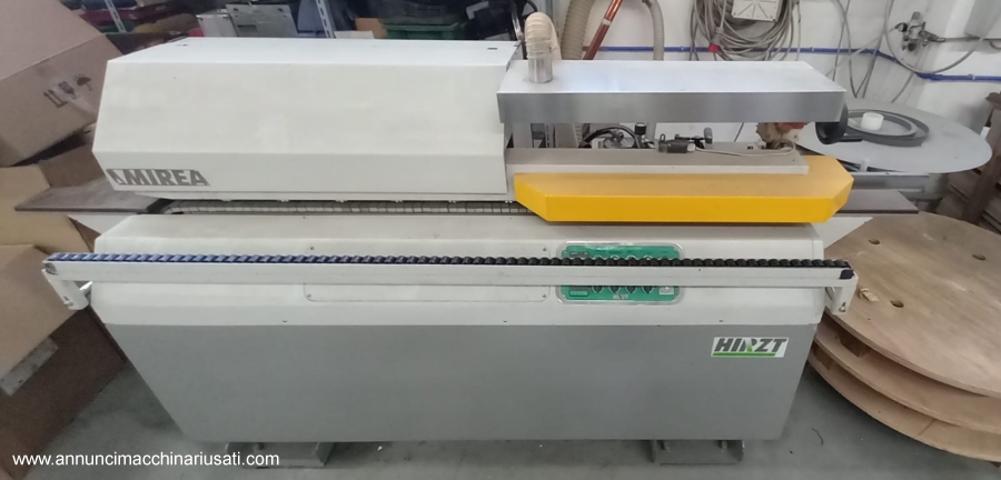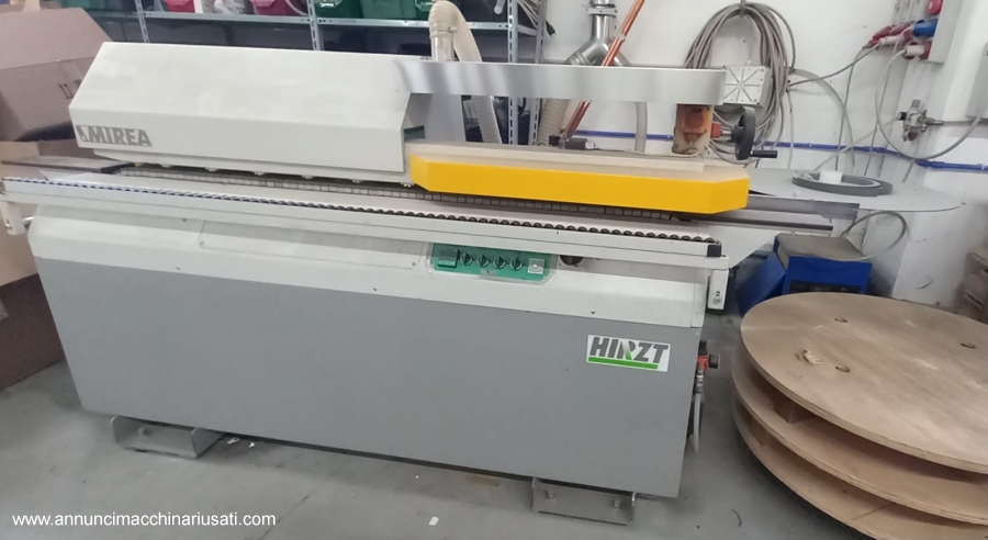 We are selling an automatic edge banding machine with hot melt glue, Hirtz brand, model Mirea, dimensions 2740x750x1300 mm, power supply 380V 50Hz, worktop dimensions 2000x750 mm, total installed power 4700W, weight 750 kg, complete with use and maintenance manual, year 1999