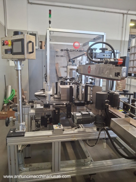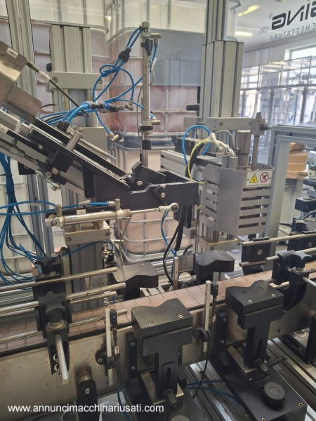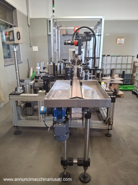 Used Self-Adhesive Labeling Machine with Shrink Capsule Applicator – 2000 bph – Overview Used E-Packaging Saturno 2T linear labeling line with integrated shrink capsule applicator and heat-activated printheads. Designed for industrial packaging in food and beverage manufacturing, this unit applies front and back self-adhesive labels and finishes bottles with shrink capsules in a compact, easy-to-use layout. Ideal for upgrading a used bottling line, it offers reliable labeling and capsule finishing at up to 2,000 bottles per hour. Technical specifications and performance data Model: E-Packaging Saturno 2T Year of manufacture: 2015 Configuration: 2 labelling stations (front + back) Labelling method: Pressure sensitive/self-adhesive (PSL) Capsule system: Capsule applicator with heat shrink heads Bottle flow: Linear Processed formats: 250 ml and 500 ml Nominal speed: approx. 2,000 bph (depending on format/label) Label placement: Front and back on cylindrical containers Accessories: Infeed spacer, mechanical centering, top stabilizer, roll-on/rotary smoothing device, capsule applicator, heat shrink head Dimensions (L×W×H): 4,500 × 1,140 × 2,250 mm Weight: ≈ 1,200 kg Power supply: 230 Vac, 50 Hz, 1+N Maximum power/absorption: 1.2 kW, 4 A Auxiliary voltage: 24 Vdc Advanced automation and control systems Two independent labeling stations with manual head adjustment for precise front/back alignment. Mechanical centering system ensures registration and repeatability from label to bottle without complex changeover parts. Bottle spacing and superior stabilization ensure consistent pitch and labeling accuracy at line speed. Capsule shrink heads with adjustable parameters for uniform capsule retraction and a high-quality finish. Production line integration capabilities Linear infeed/outfeed suitable for integration into a bottling line used in conjunction with fillers, cappers, and conveyors. Standard machine interfaces for upstream/downstream synchronization in industrial packaging environments. Adjustable guides and quick mechanical settings support quick changeovers between 250 ml and 500 ml bottles. Machine condition and maintenance history Condition: In production at the time of inspection, used and in full working order. Documentation: Original manuals and CE declaration available. Well-maintained unit from a food application, suitable for immediate use in beverage or condiment production. Operational Performance and Versatility: Reliable pre-owned solution for pressure-sensitive double-sided labeling and shrink-wrapping of capsules in a single pass. Consistent application quality on small-format glass or PET bottles typical of gourmet, vinegar, spirits, and beverage lines. Manually adjustable scales support repeatable recipes and minimal downtime during format changeovers. Installation and Site Preparation Requirements: Power Supply: 230 VAC, 50 Hz, single-phase (1+N); 1.2 kW installed power; 4 A max. Spatial Enclosure: 4.5 m long; Allow for service access approximately 1.14 m wide and 2.25 m high. Floor: Level industrial surface capable of supporting ≈1.2 t. Environment: Ventilated area for heat heads operation and label adhesive performance; Standard packing room conditions. Safety Standards and Compliance Certification Safety Features: Machine protection with interlocking doors and emergency stops on the main frame. Compliance: CE compliant according to EU Machinery and EMC Directives (documentation included). This Saturno 2T E-Packaging machine offers a compact, robust, and compliant solution for modernizing a used bottling line with accurate self-adhesive labeling and professional shrink-wrap application, optimized for industrial packaging and beverage production.