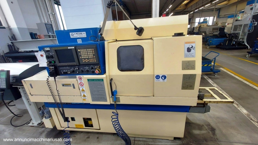 TSUGAMI BS20 SWIFT HEAD CNC LATHE - II YEAR/Year: 1998 CONTROL/Control: Fanuc N. CONTROLLED AXES/No. of controlled axes: 5 (X1, Z1, T1, X2, Z2) Ø PASSAGGIO BARRA MANDRINO/Spindle Bar diameter: max 20 mm MANDRINO/Main spindle speed: 8,000 rpm COUNTER SPINDLE SPEED/2nd spindle speed: 6,000 rpm MANDRINO/Spindle Power: 2.2 – 3.7 Kw COUNTER SPINDLE POWER/Subspindle Power: 0.65 Kw MAX TURNING LENGTH/Max turning length: 210 mm DIMENSIONS/Dimension: L 2,150 x W 1,450 x H 1,855 mm WEIGHT/Weight: 2,500 Kg ACCESSORIES: BAR LOADER LNS 332 - 2011 Accessories: Bar loader LNS 332 – Yom 2011