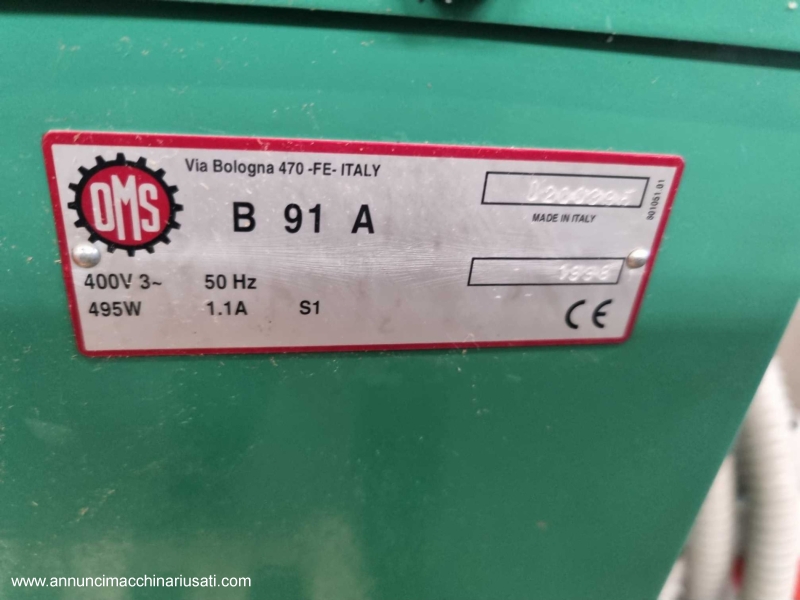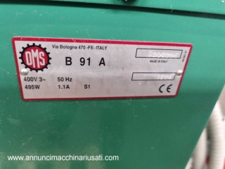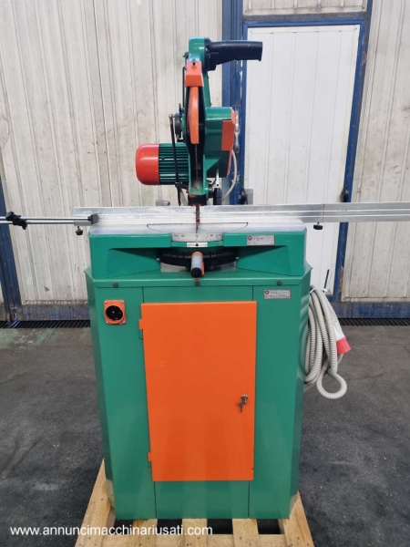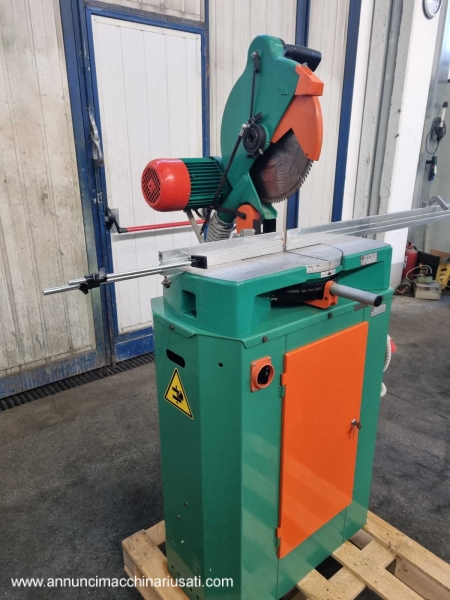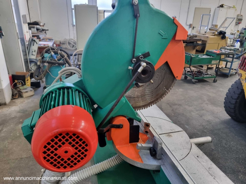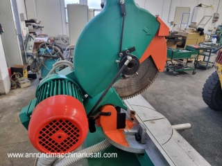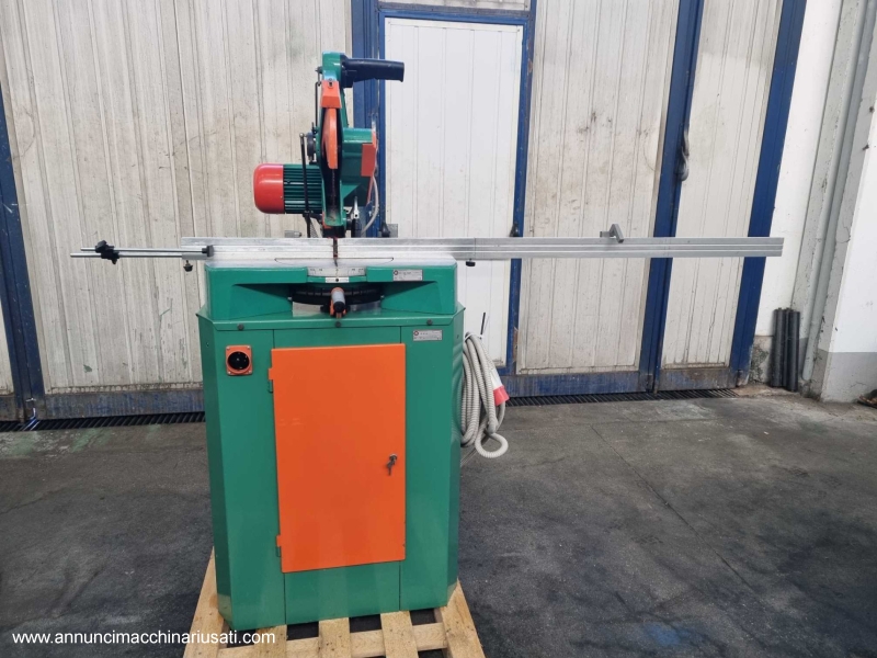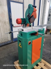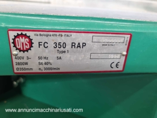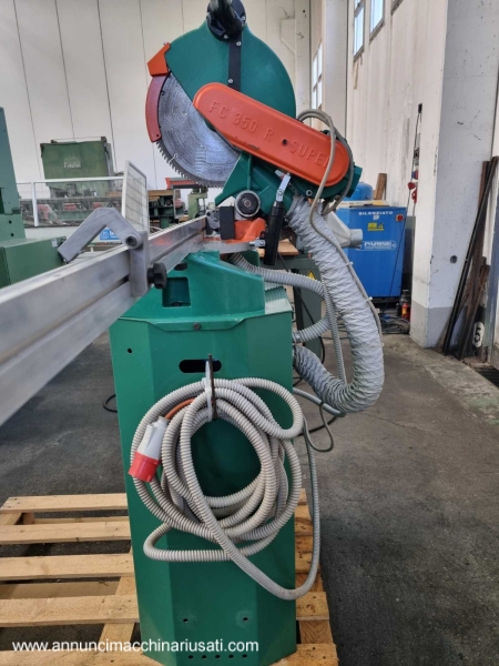 Mitre saw with suction table - OMS FC350RAP B91A year of construction 1998 CE compliant machine blade diameter 350 mm blade motor 2.8 kw (3.5 hp) suction motor 0.5 kw (0.7 hp) voltage 400V-50Hz-3ph operation verified transport dimensions 1050x800x1600h mm weight 90 kg