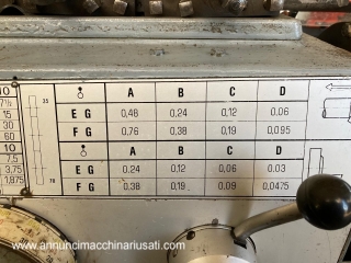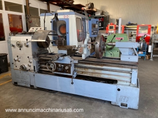 BMP 30 parallel lathe Height of centers 300 mm Distance between centers 1500 mm Diameter on the bed 610 mm Diameter on the carriage 390 mm Diameter in the notch 775 mm Bar passage 66 mm No. 12 speeds from 20 to 1500 rpm Motor power 10 Hp Overall dimensions 3200x80xh1200 mm Total weight 3000 kg.