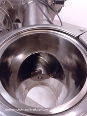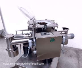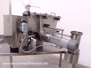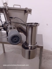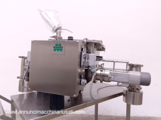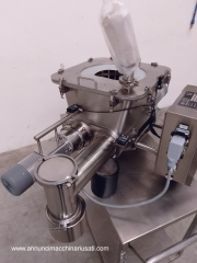 MACHINERY TYPE: Forced feeder for powders SECTOR OF USE: pharmaceutical, food, cosmetics, fine chemicals industries DETAILS: The MANES Model HDS 90/2 Forced Feeder is an automatic feeding system specifically designed for the management and controlled introduction of powders into tablet presses. Made of stainless steel, it is ideal for environments requiring high hygiene standards and corrosion resistance. The heart of the system is a vibrating unit that conveys the material through a loading hopper via twin screws. The size of the screws ensures forced transport and precise dosing, dividing the flow towards a double product outlet. This double-exit, twin-screw design is optimized to simultaneously feed the loading hopper of two tablet press stations, ensuring a continuous and balanced flow of material. The integration of limit switches or product presence sensors allows for precise control of the feeding process, avoiding overloads or interruptions, all in a compact and modular structure designed for easy integration and cleaning. Product Type: Powder Product Inlet: Diameter 300 mm Product Outlet: Double outlet, Diameter 150 mm Auger Dimensions: Diameter 70 mm - Length 640 mm Weight: 60 kg