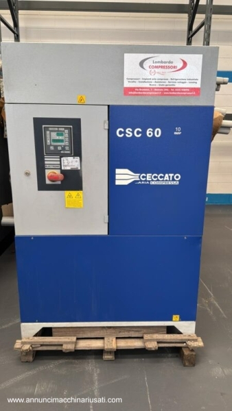 Used rotary compressor Ceccato Mod. CSC 60-10 bar Power 45 kw - 60 Hp Max. air flow 8,000 Lit.-min Year 2009 Possibility of shipping throughout Italy (for a fee)