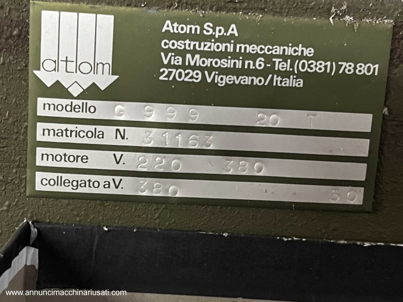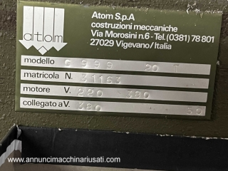 Used flag die cutter with 20 tons of power and 50 x 90 plate in excellent condition, non-CE machine in perfect working order, single owner, NEVER been overhauled, first factory paint, The images are real of the machine for sale, we do not use stock photos or photos of other advertisers. Sector Equipment and Machinery Category: Cutting Machines Manufacturer: ATOM Model: G999 Plate: 50 x 90 Color GREEN Original motor YES Serial number 31163 Power supply 380 Electrical system YES Weight approximately KG 1000 Condition USED Compliant with CE standards NO Overhauled NO Warranty NO Price 1,000.00 Euros NOT negotiable Delivery F.CO NS WAREHOUSE Location OUTSKIRTS OF PISA Immediate availability Shipping NO Invoiceable YES (VAT NOT DISPLAYED) Payment Methods Advance bank transfer NB. Machine to be collected from the depot with a vehicle equipped with a crane! If you're interested, please leave your contact information and we'll get back to you as soon as possible. Messages without a phone number and low-ball offers will be automatically deleted, so don't waste your time. Thank you
