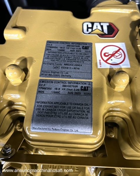 20 kVA Stage V Caterpillar XQP20 generator, year of manufacture - 2025, engine - Caterpillar C2.2, frequency - 50 Hz, voltage - 400 V, tank volume - 56 l, gross weight 815 kg, CE certifications.
