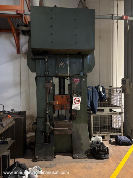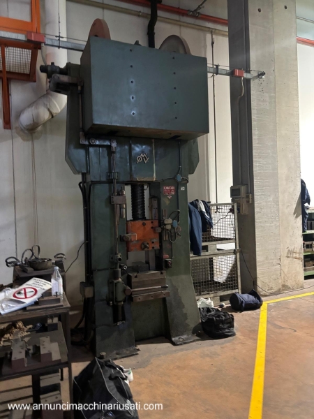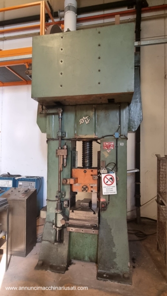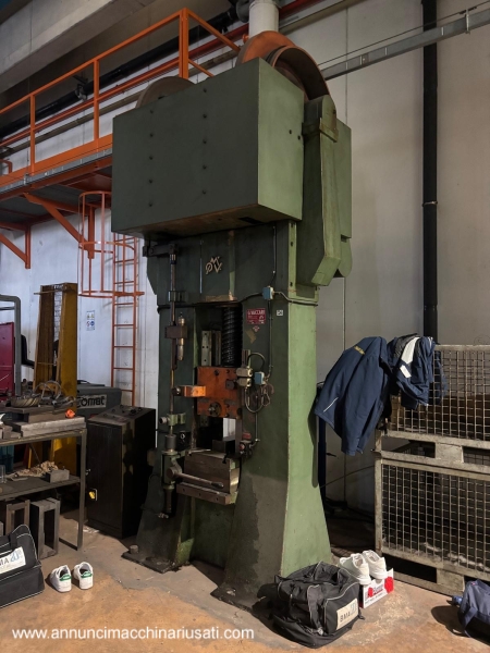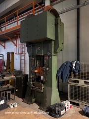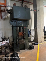 Vaccari balance beam 220 ton Strokes per minute: 35 using the maximum stroke and maximum power Maximum stroke: 350 mm Motor: 16 kW Table size: 430 x 550 mm 3 thickness tables mounted on the balance beam: 100 mm + 40 mm + 70 mm Minimum distance (daylight) between table and slide: 150 mm (with the thickness tables mounted) Overall dimensions: 1600 x 1200 x H. 3500 mm
