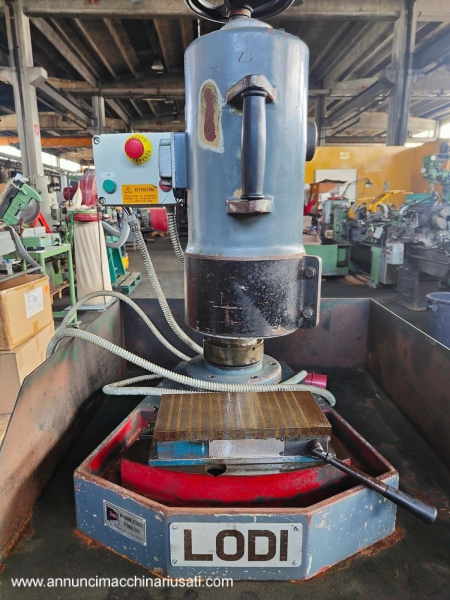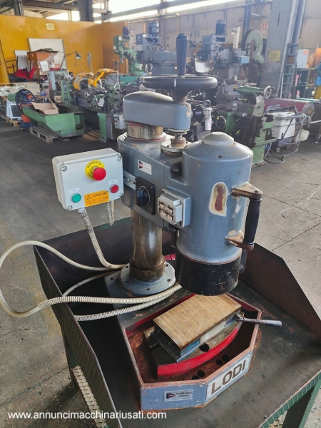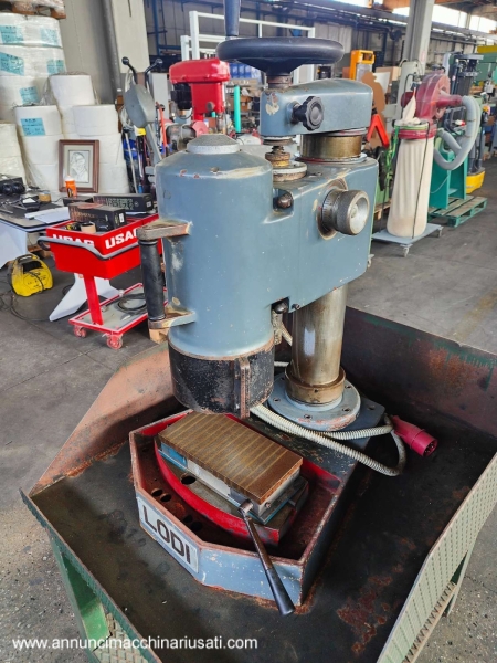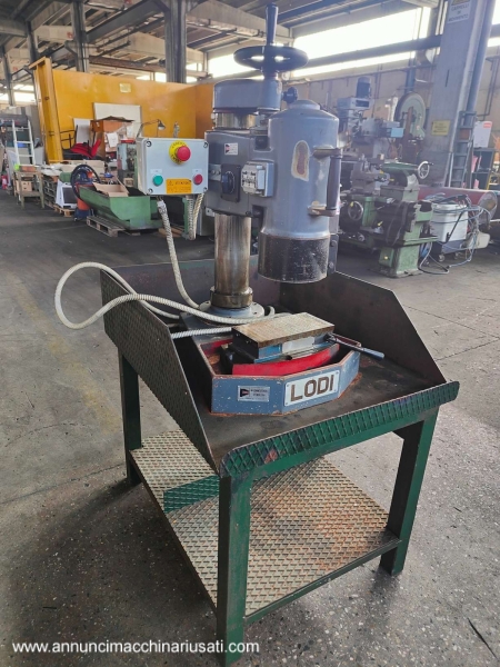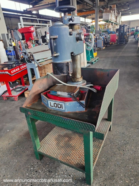 VISIBLE IN RIVOLI (TO) For sale: Lodi brand benchtop cup grinder/surface grinder, complete with worktop. 180° cup grinder; 380V power supply. Grinder dimensions: 60x70xH90 cm; overall dimensions: approx. 81x97xH160 cm. Asking price: €800.00 plus VAT