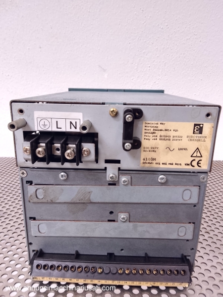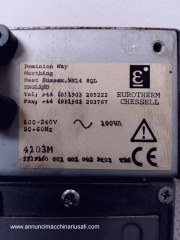 PRODUCT DESCRIPTION: High-precision paper chart recorder (videographic/hybrid). INDUSTRY OF USE: Pharmaceutical, chemical, cosmetic, food, dietary, medical devices. SPECIAL FEATURES: The Eurotherm Chessell 4103M is designed for continuous monitoring and documentation of industrial and laboratory processes. It can measure signals from various types of sensors (such as thermocouples or linear signals) and record them in real time on a high-visibility fluorescent digital display and on paper using a dot-matrix printing system. Its rugged and compact construction makes it ideal for historical data traceability applications, compliant with quality standards. Power supply voltage: 100-240V AC (alternating current) Mains frequency: 50-60 Hz Power consumption: 100 VA (max) Dimensions: 250 x 150 x 150 mm Weight: 2 kg Certifications: CE Mark, UL Listed