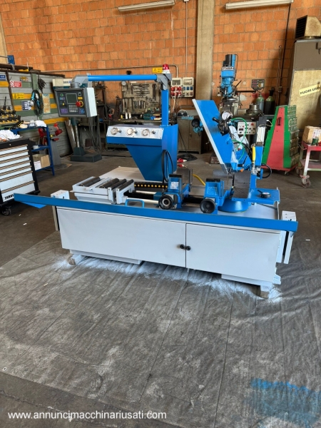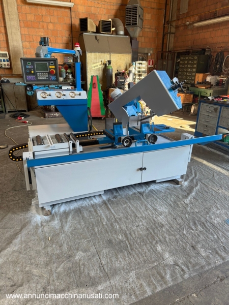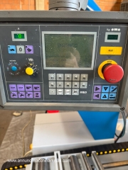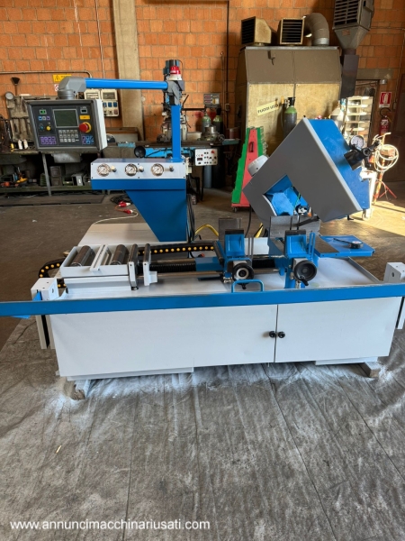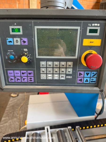 CNC band saw MEP Model SHARK 330 CNC FE Year 1996 Completely overhauled Cutting capacity 0 degrees round: 260 - square: 230 - rectangle: 330x230 mm Cutting capacity 45 degrees left round: 240 - square: 200 - rectangle: 230x200 mm Blade dimensions 3150x25.4x0.9 mm Cutting speed Slow: 36 m/min - Fast: 72 m/min Worktop height 690 mm Blade motor 1.5 Kw Electric pump motor 0.13 Kw Single hydraulic power unit motor 0.22 Kw Machine dimensions 2460x2020x1790H mm Weight 1220 kg